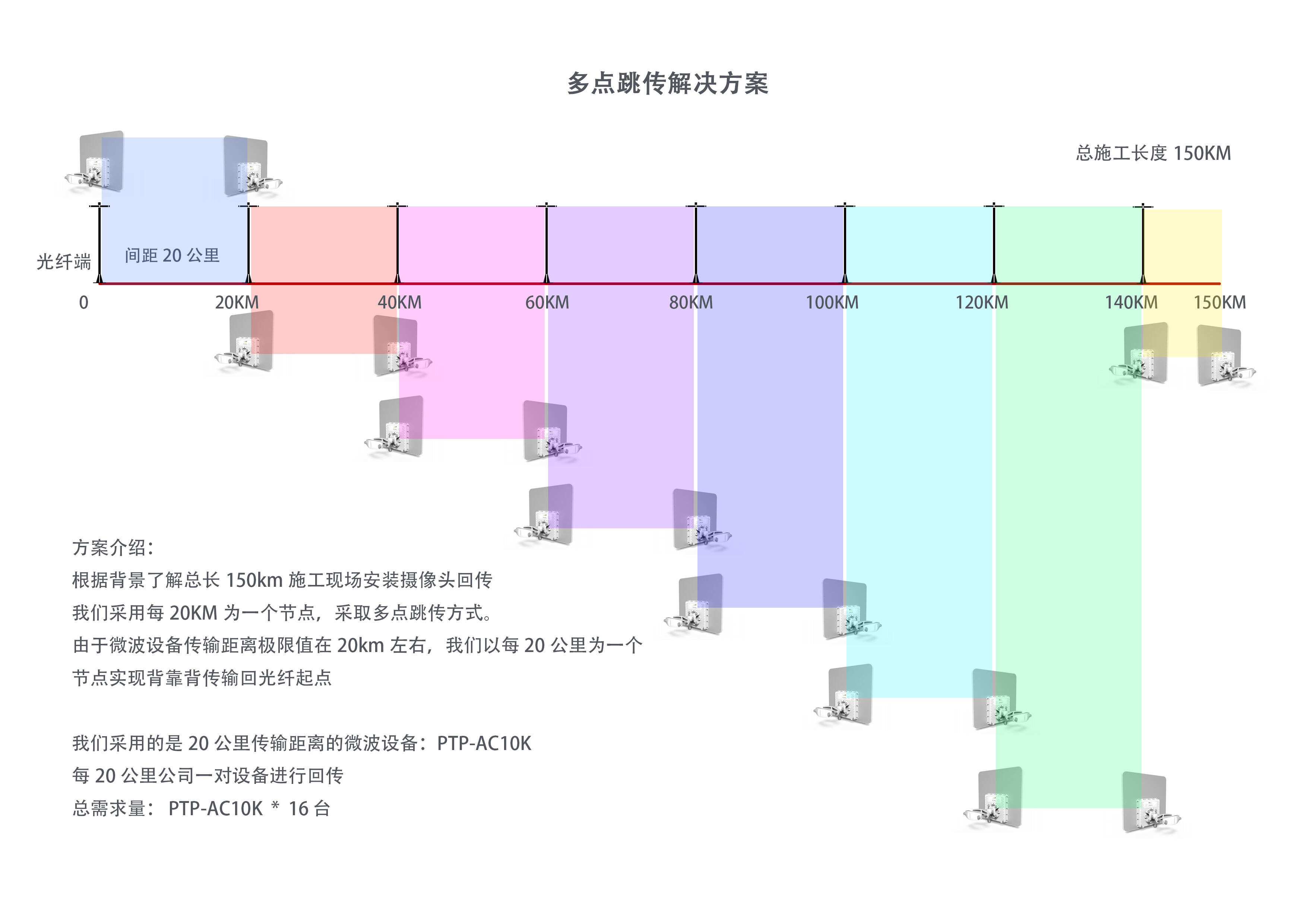 四、LigoWave PTP 150km(20km/跳)中继方案详情