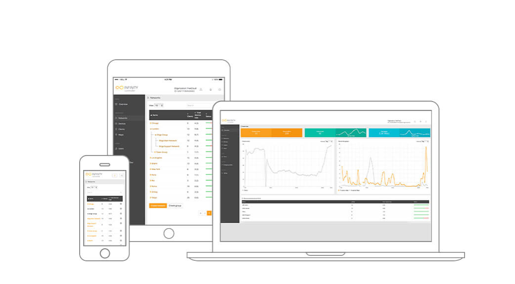 Infinity 控制器是一款无线网络管理平台,目前可用于 NFT 系列,不久将用于 LigoDLB 和 LigoPTP 系列。该控制器允许用户使用自动设备入职、预定义网络场景和其他功能来安装、管理和扩展 NFT Wi-Fi 网络。用于 DLB 和 PTP 系列的 Infinity 控制器将使用户能够简化构建、扩展和维护无线网络的方式。