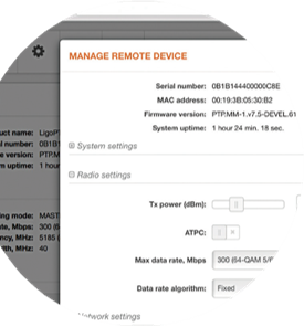 LigoPTP 操作系统可确保轻松快速地部署点对点链路,并具有稳定、快速的性能。直观且响应迅速的用户界面可根据屏幕大小调整布局。包括设置向导、链路测试、天线对准、频谱分析仪和站点调查在内的基本工具可使设置和故障排除更加高效。自动通道和自动发射功率控制等自动机制可优化链路,即使在干扰较大的区域也能实现最佳性能。