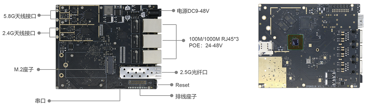 高性能双频WIFI6,采用高通高性能芯片设计,板载2.4GHz、5GHz高达1GBps有效吞吐量,支持MU-MIMO、OFDMA等WIFI6专有技术,具备高带宽、大容量等特性,支持20M/40M/80M/160M频宽,可以做为CPE嵌入式模块广泛应用于工业现场AI视觉回传、分拣机器人、厂内无人车、管廊巡检机器人、矿道施工、无人工厂等。